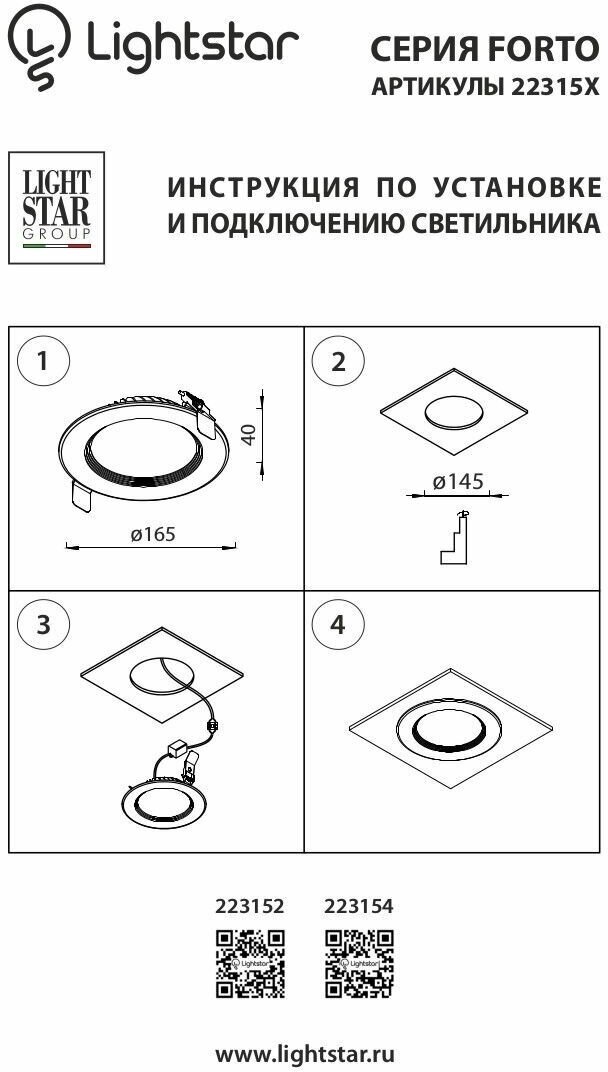 Встраиваемый светильник Lightstar Forte Armadio 223154 интересное: