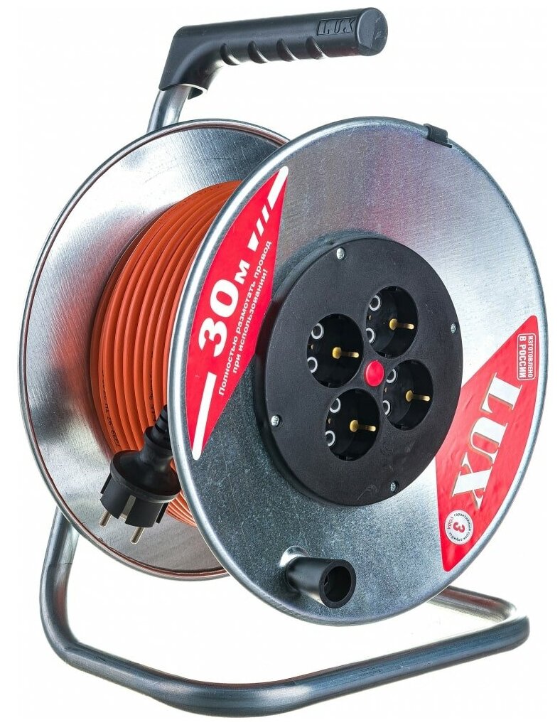 Силовой удлинитель на металлической катушке LUX К4-Е-30 30м 4 розетки с з/к 4606400419426