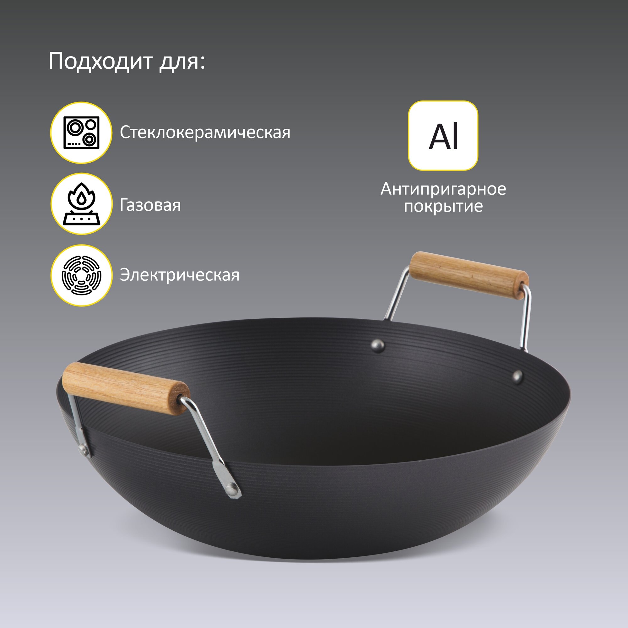 Сковорода-вок LARGO, 32 см, антипригарное покрытие, углеродистая сталь, 005363