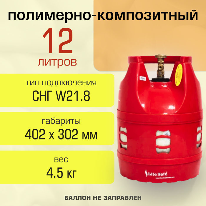 Баллон бытовой газовый (пропановый) композитный 12л LiteSafe