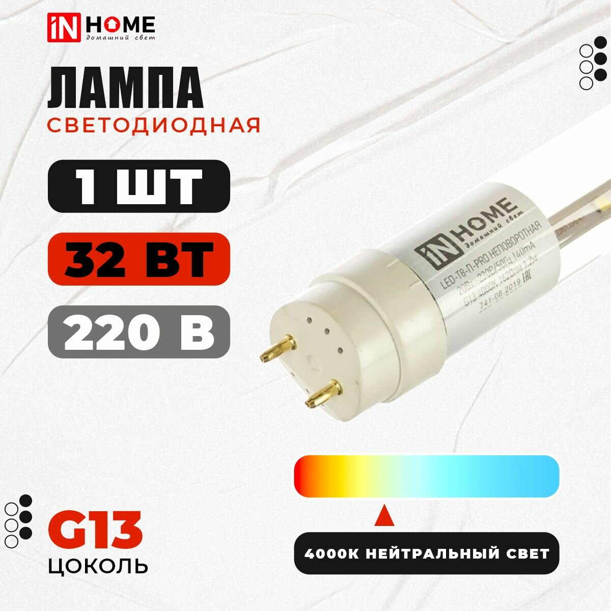 Лампа светодиодная IN HOME LED-T8-М-PRO, 32 Вт, 230 В, G13, 4000 К, 3200 Лм, 1500 мм матовая 9527882