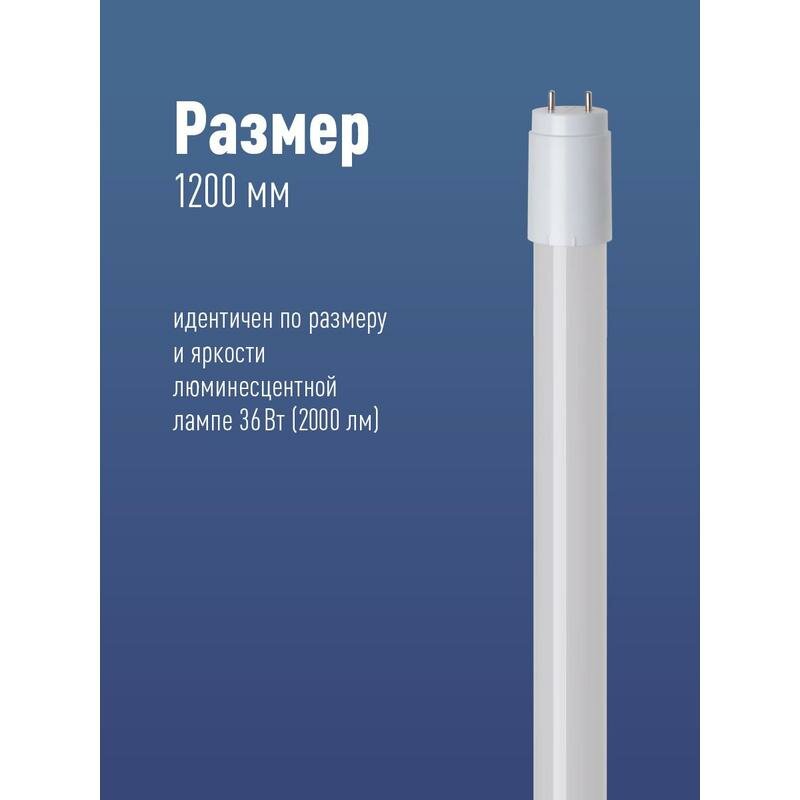 Купить Лампа светодиодная 20Вт G13 4000К 220В GLASS 1200мм T8 Космос Lksm_LED20wG13T840GL