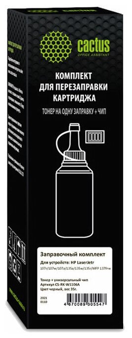 Тонер Cactus CS-RK-W1106A, для HP LaserJet 107/135/MFP 137, черный, 35грамм, флакон, чип