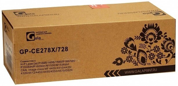 Купить Картридж GP-CE278X, 726, 728 для принтеров HP LJ Pro P1560, P1566, P1600, P1606dn, M1536 Canon i-Sensys MF4410, 4420, 4430, 4450, 4550d, 4570d, 4580dn, 4870dn, D520, LBP-6200D 2300 копий GalaPrint