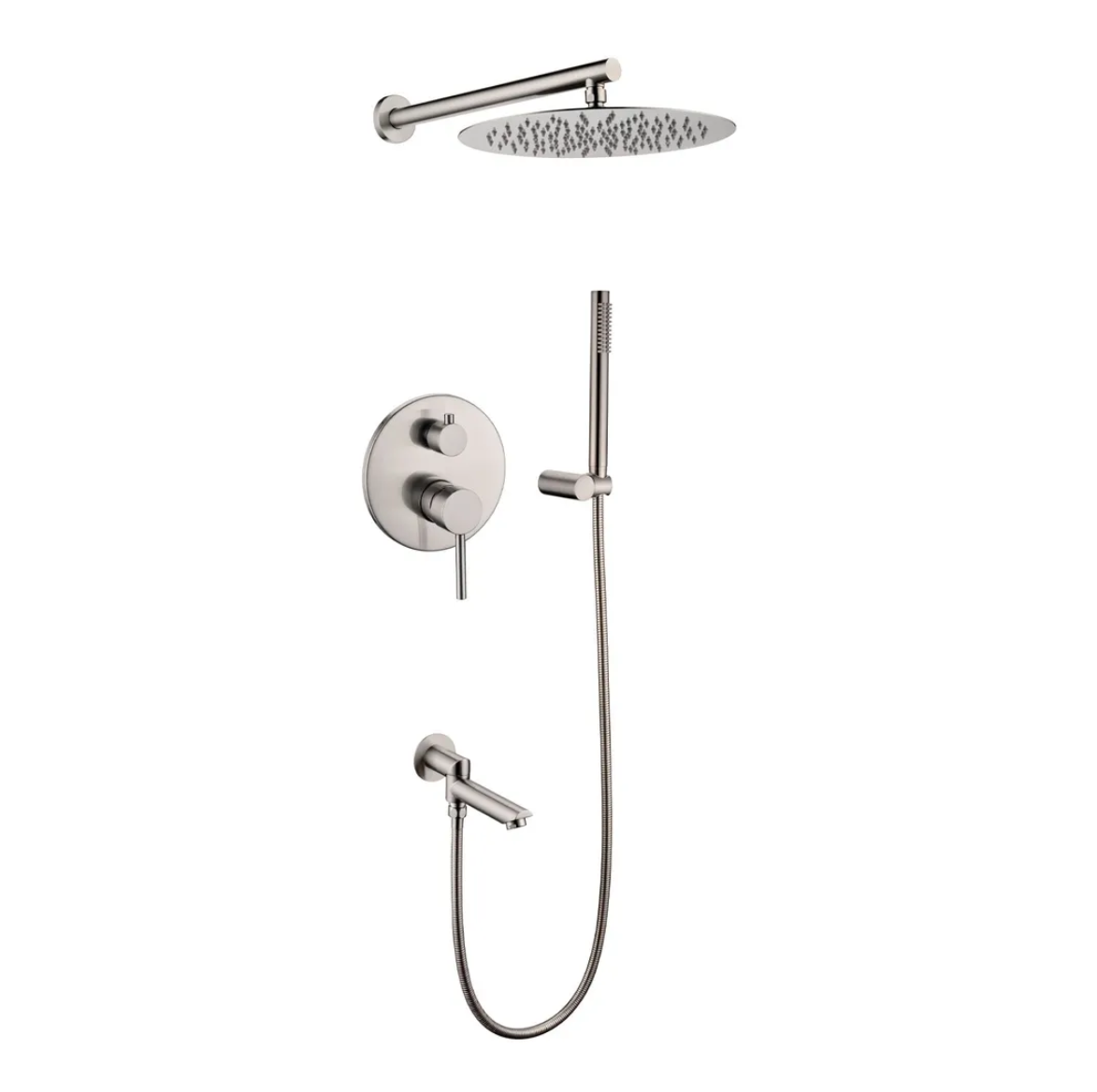 | Комплектация | вентиль / верхний душ / держатель лейки / излив для набора воды / кронштейн / лейка / ручной душ / шланг |