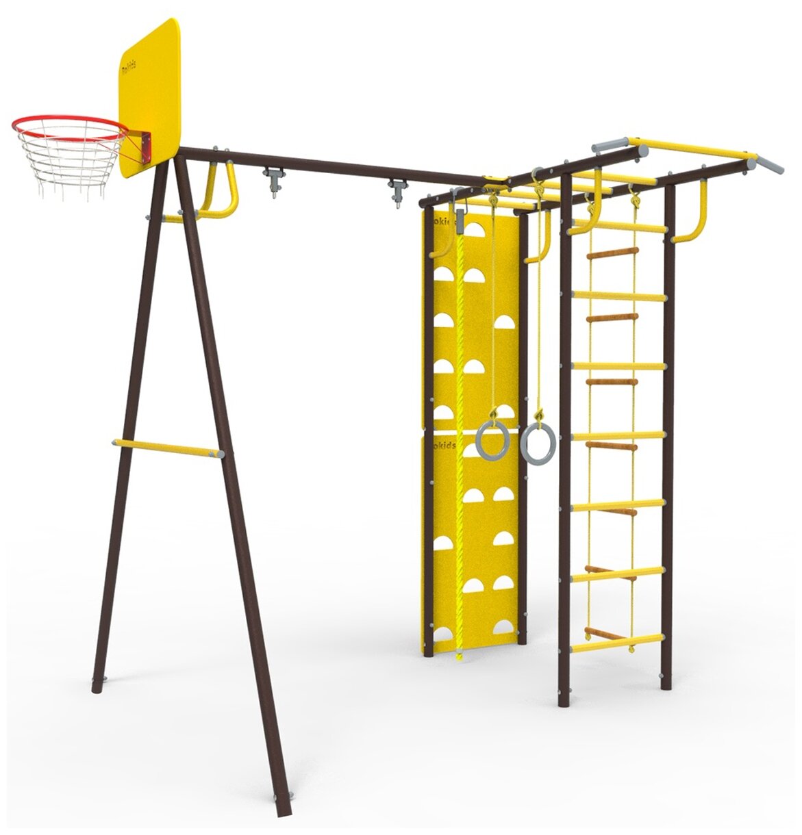 | В комплекте | баскетбольное кольцо, веревочная лестница, гимнастические кольца, канат, рукоход, скалолазная стенка, турник |