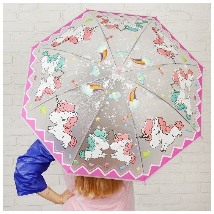 Зонт детский для девочек, Минни Маус Единорог, 8 спиц d=86 см