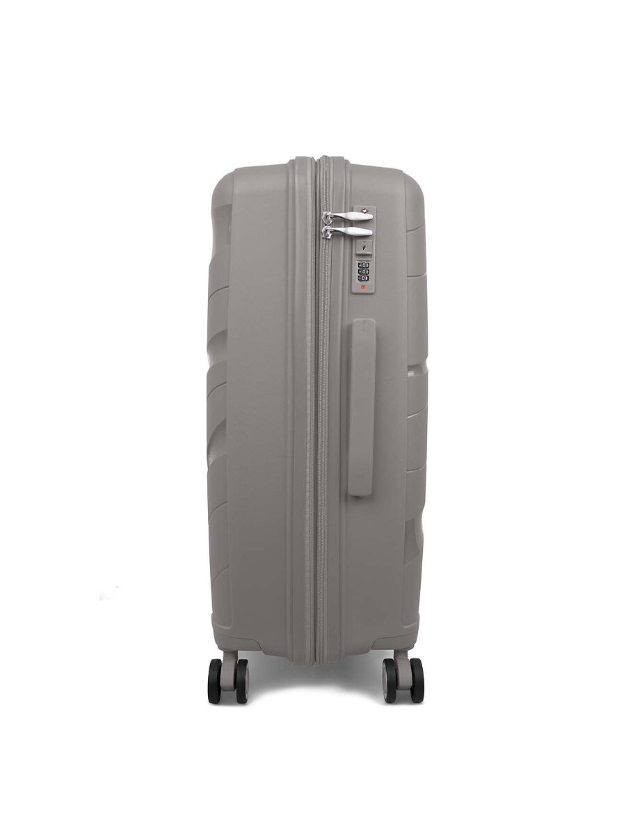 Чемодан на колесах дорожный большой семейный багаж для путешествий мужской l Тевин размер Л 73 см 105 л легкий и прочный полипропилен Серый лучи