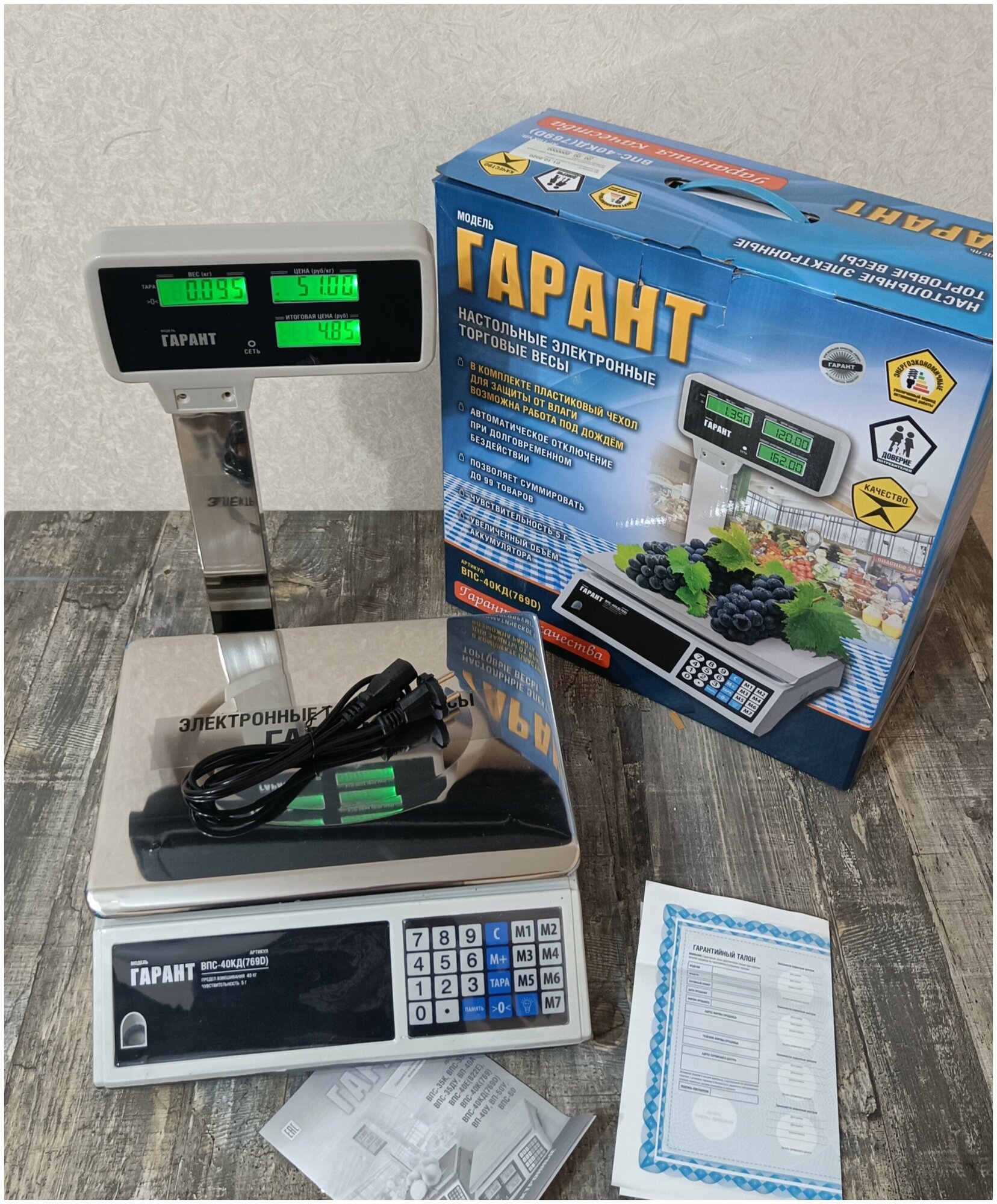 Весы торговые электронные, "Гарант" ВПС-40 Д, до 40 кг, оборудование для магазина, настольные, со стойкой, с аккумулятором до 200 часов, 5 граммовые интересное: