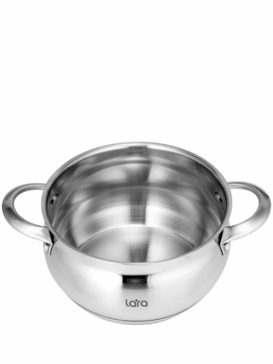 Набор кастрюль из нержавеющей стали LARA LR02-112 AURORA/ 2 л + 3.8 л + 6.3 л/ для всех видов плит/ 3 предмета
