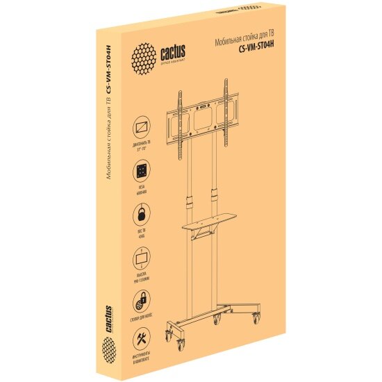 Стойка для телевизора Cactus CS-ST04H, 37-70", напольный, мобильный, черный