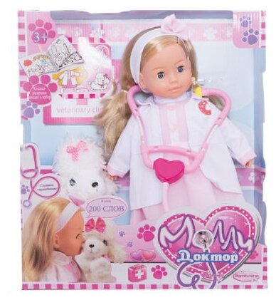 Кукла DIMIAN Molly Доктор со стетоскопом и собачкой, говорит 2 слов, частично мягконабивная, 40 см,