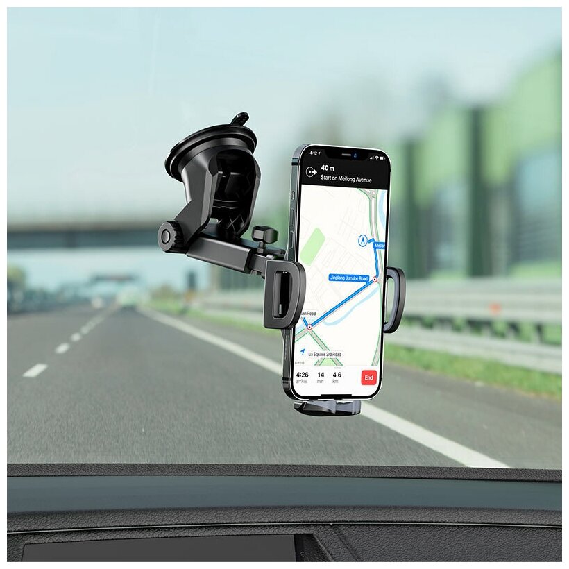 Автомобильный держатель BOROFONE BH53 Windy, зажимной, на приборная панель/лобовое стекло, черный+серый