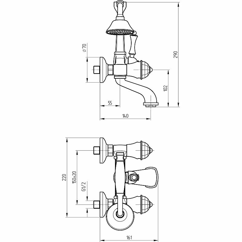 Купить Смеситель для ванны с душем Migliore Korona Swarovski 27307 (ML.KRN-4703.CR)