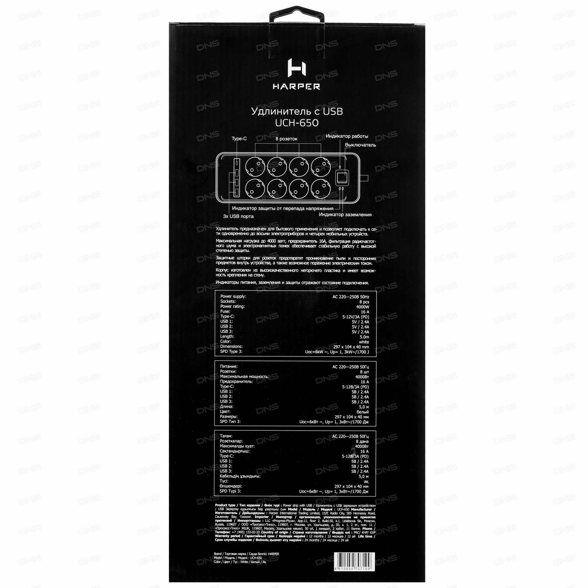 СохранитьСетевой фильтр Harper UCH-650 белый интересное: