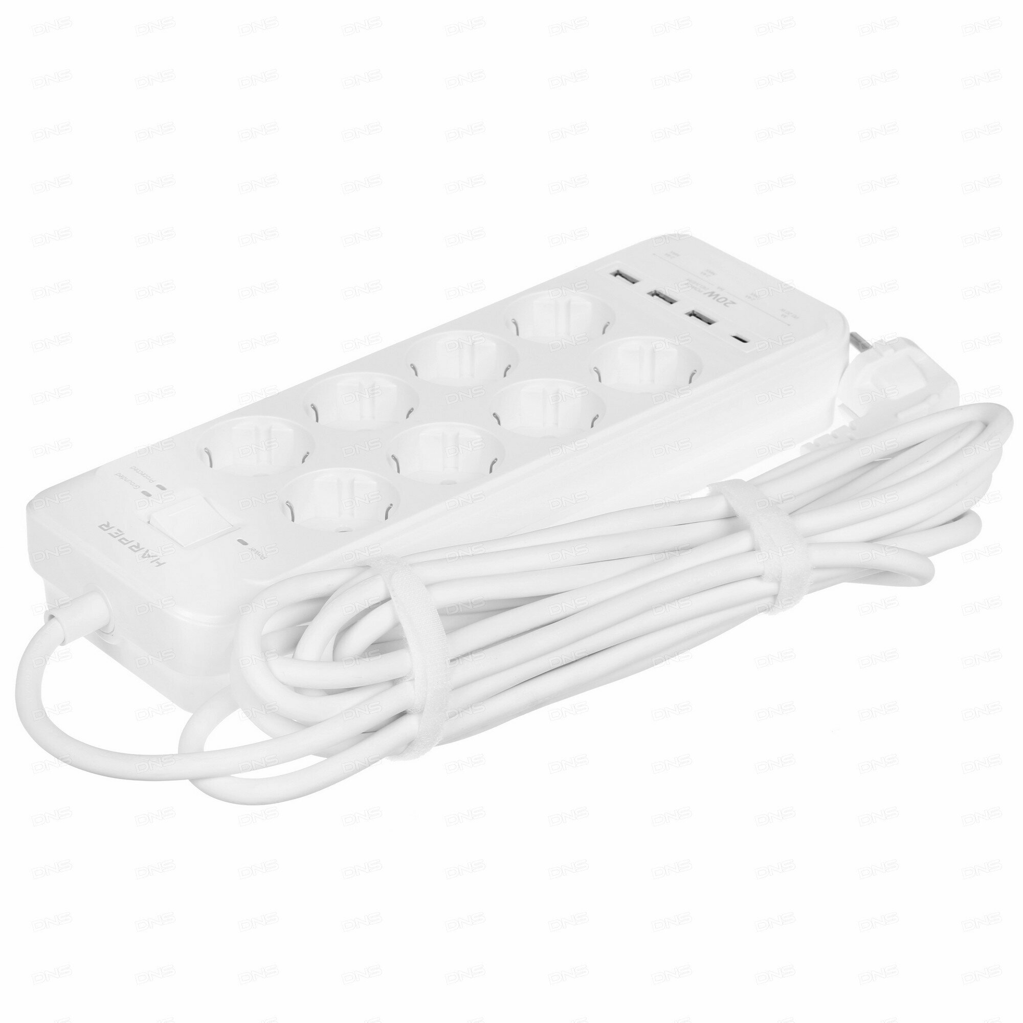 Сетевой фильтр с USB зарядкой HARPER UCH-650 Белый PD3.0