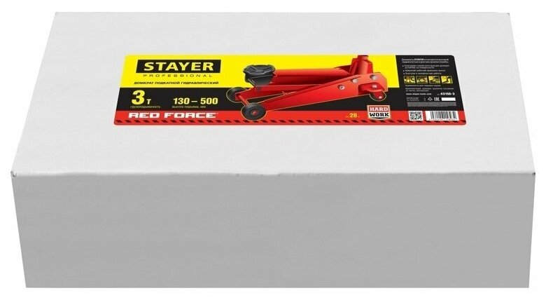 Домкрат подкатной STAYER F-30 3т 130-500мм с высоким подъемом для сто, red force,43150-3