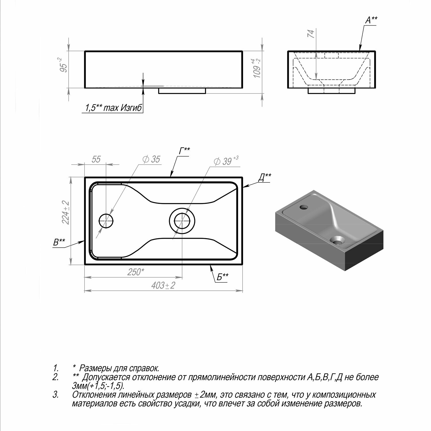 Раковина Andrea Sky 40 см, прямоугольная интересное: