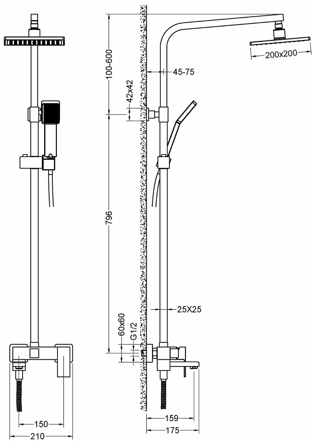 | Форма бокового душа | квадратная |
