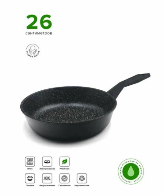 | Плюсы: | Хорошая сковорода, использую для индукционной плиты. Ничего не пригорает, приятная ручка.