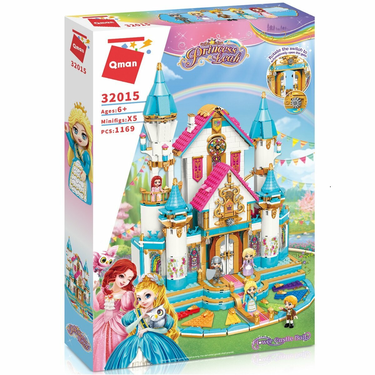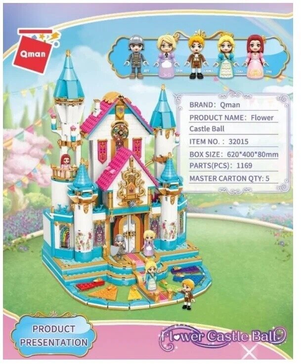 Qman Конструктор Qman Принцесса Лиа Бал в цветочном замке 1169 деталей и 5 мини-фигурок 32015