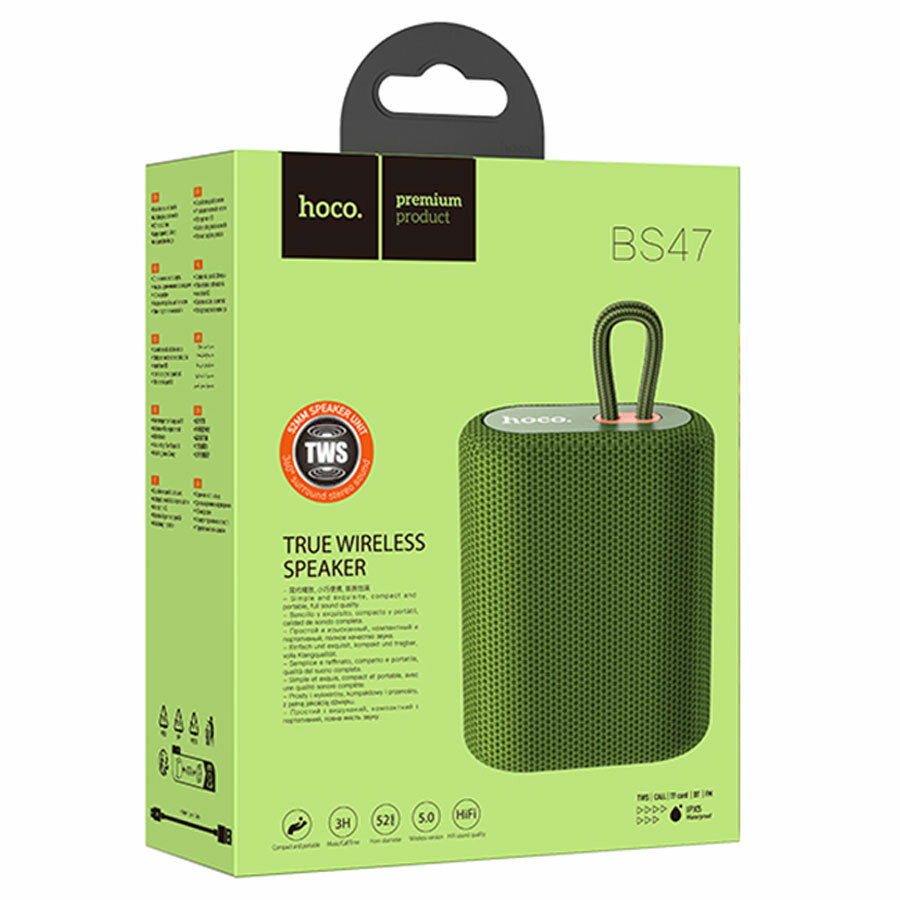 Портативная колонка Hoco BS47, 5 Вт, 1200 мАч, BT5.0, microSD, зелёная