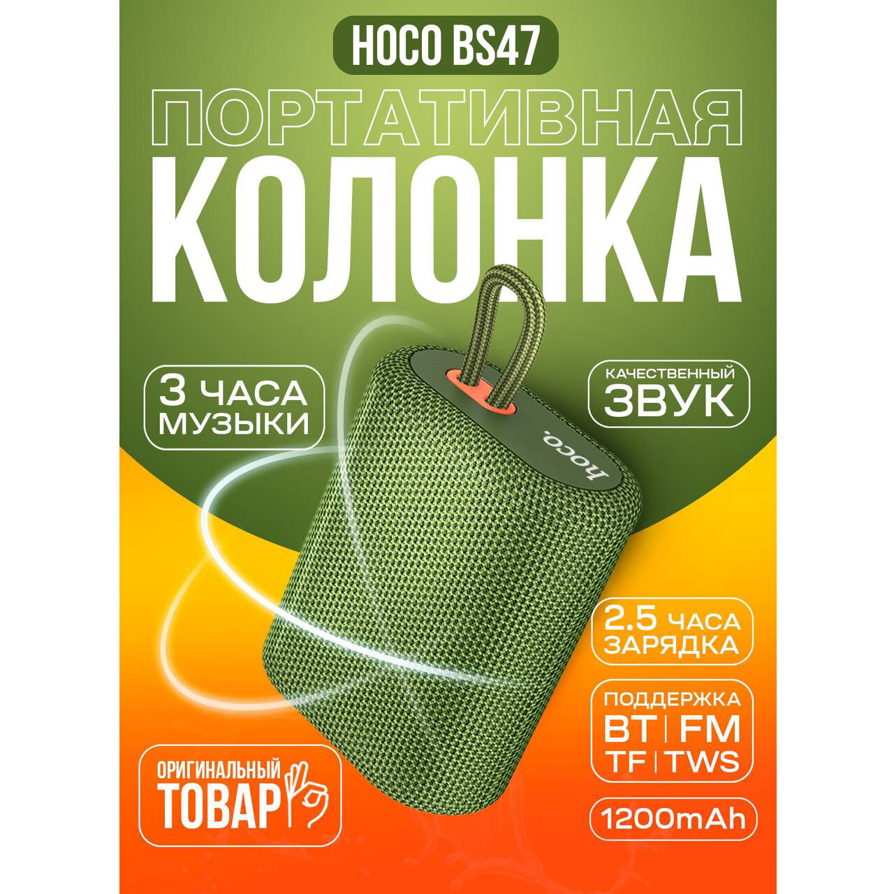 Hoco портативная колонка (BS47), зеленый