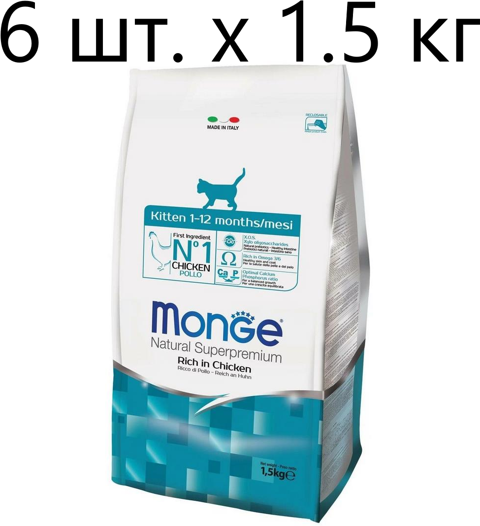 Сухой корм для котят Monge Natural Superpremium, с курицей 6 шт. х 1.5 кг