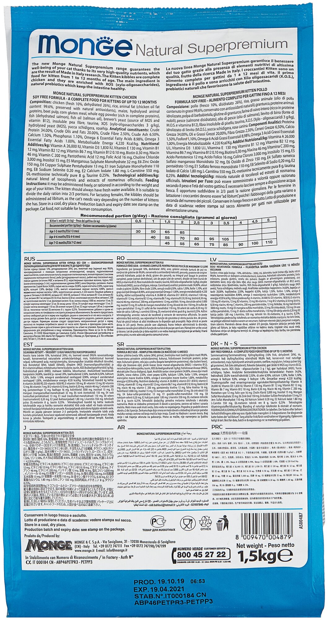 Сухой корм для котят Monge Natural Superpremium, с курицей 1.5 кг
