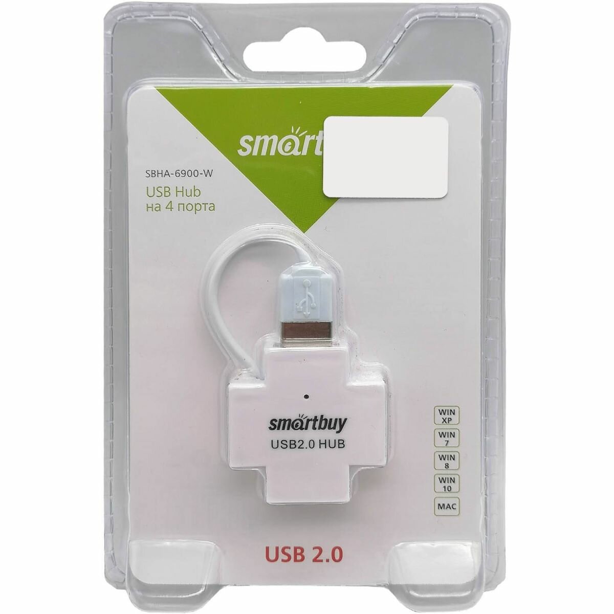 Концентратор USB 2.0 Smartbuy SBHA-6900-W интересное: