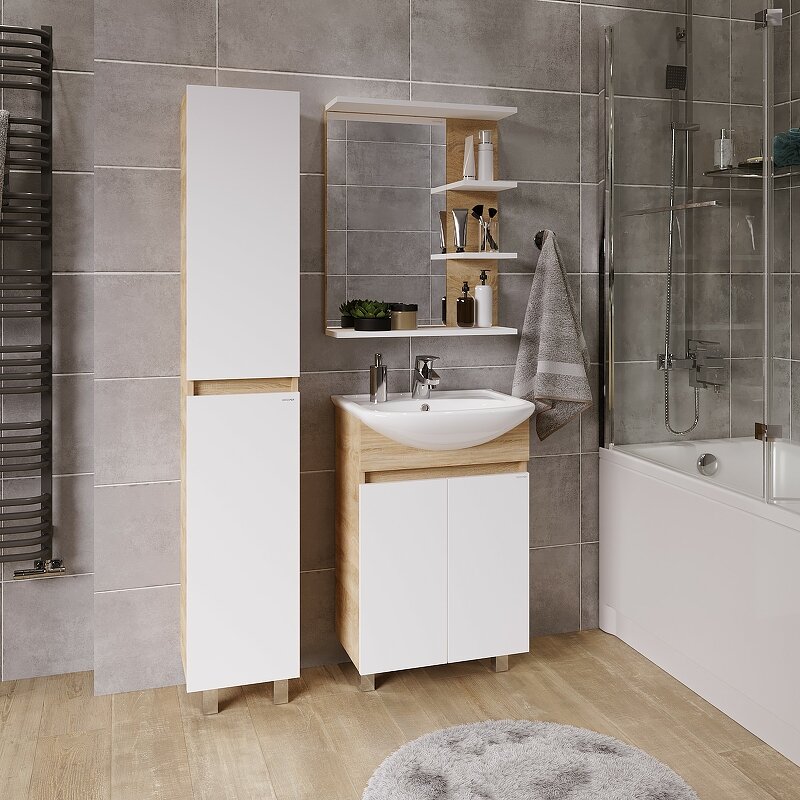 Тумба под раковину Grossman ПОЛО-55 см дуб сонома/белая 105501