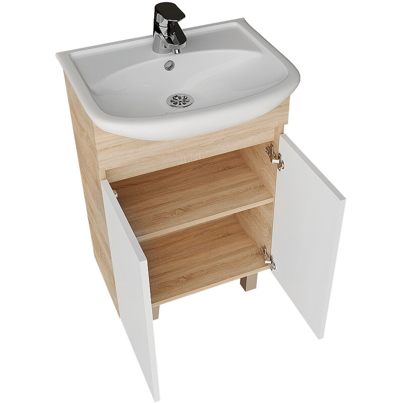 Тумба напольная Grossman "ПОЛО-55 см" дуб сонома/белая +умывальник Уют-55