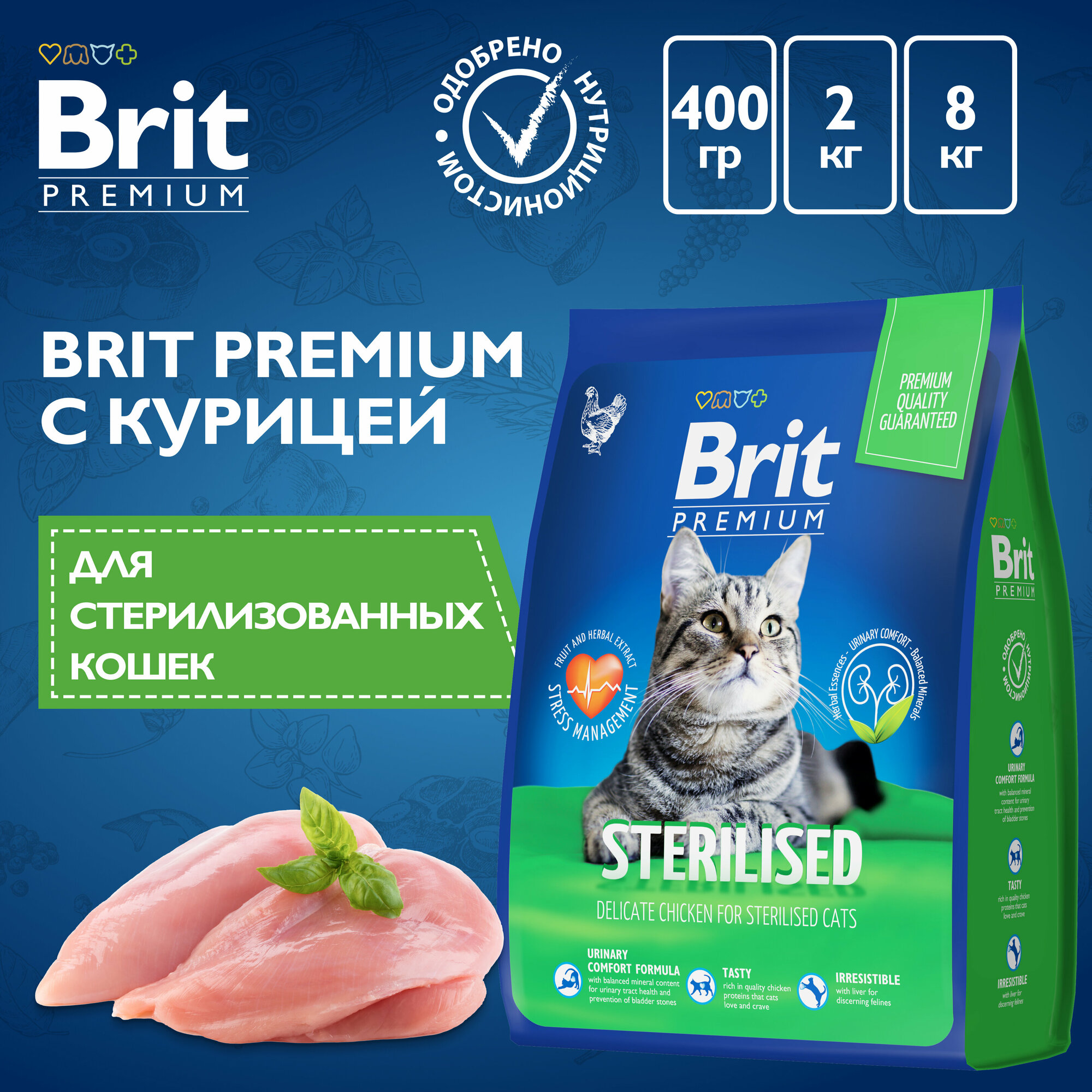 Brit Premium Cat Sterilized Chicken сухой корм премиум класса с курицей для стерилизованных кошек, 0,4кг, 1шт
