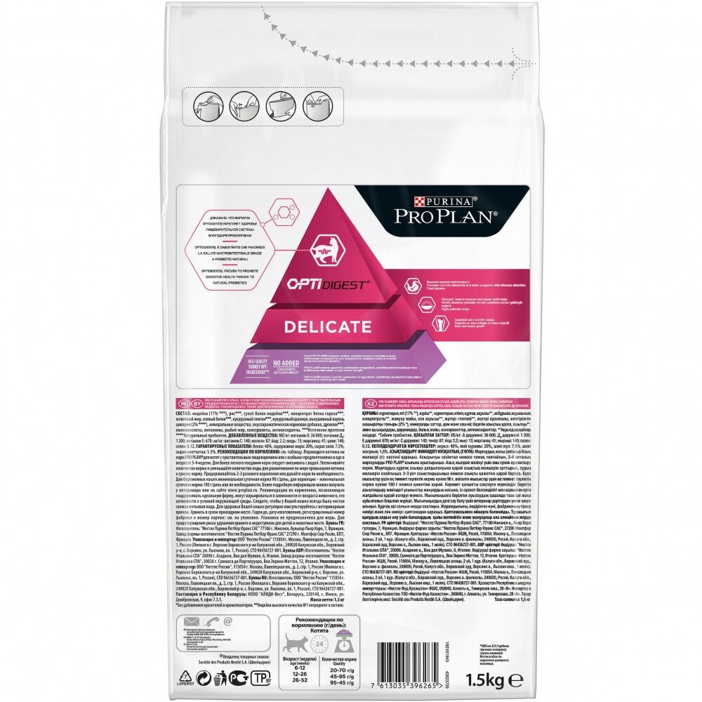 Pro Plan Delicate OptiDigest сухой корм для котят с чувствительным пищеварением или особыми предпочтениями в еде, с индейкой 1,5кг