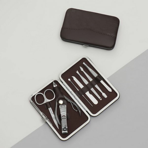 Набор маникюрный, 8 предметов, в футляре, цвет коричневый (арт. 1759092)