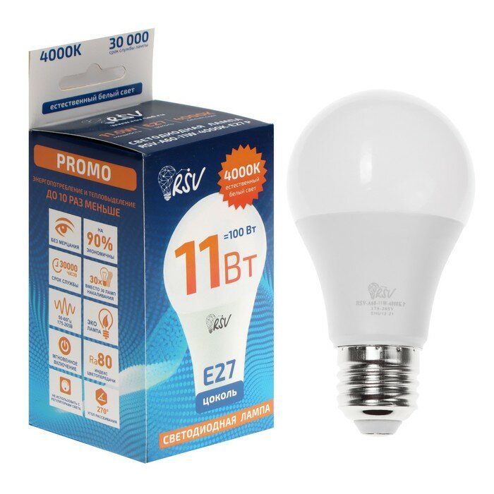 Светодиодная лампа RSV RSV-A60-11W-4000K-E27 P интересное:
