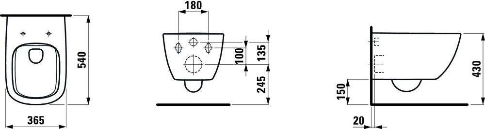 Laufen Palomba Унитаз подвесной 540х360х265 мм., безободковый смыв Rimless, цвет белый