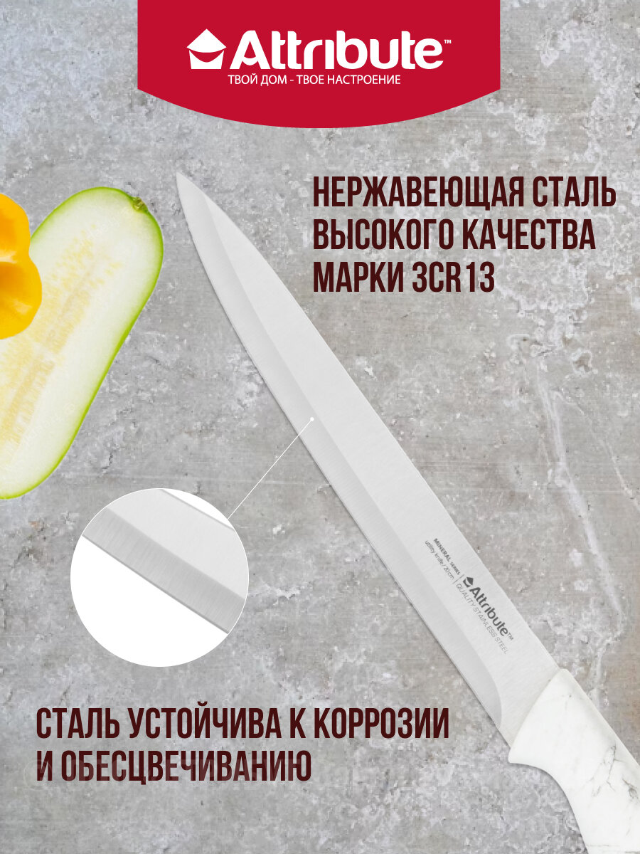 | Дополнительная информация | Нож ATTRIBUTE Marble 20см универсальный нерж. сталь, пластик |