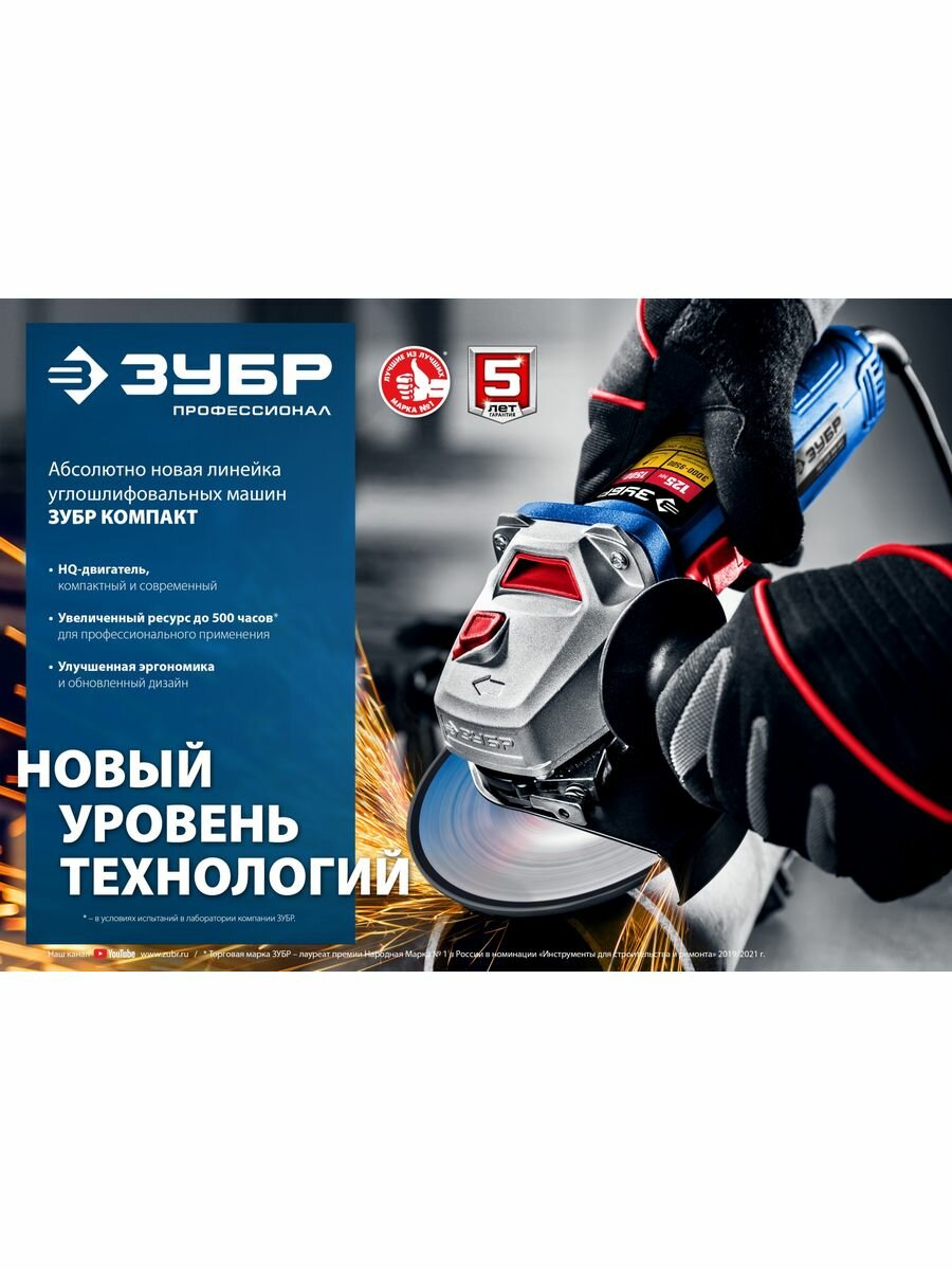 Болгарка 125 мм, УШМ (Машина шлифовальная угловая) ЗУБР 900 Вт, компакт, серия профессионал