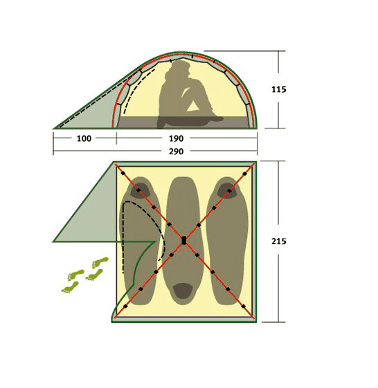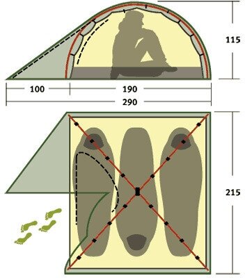 | Габариты внешней палатки(ДxШxВ) | 290x215x115 cм |