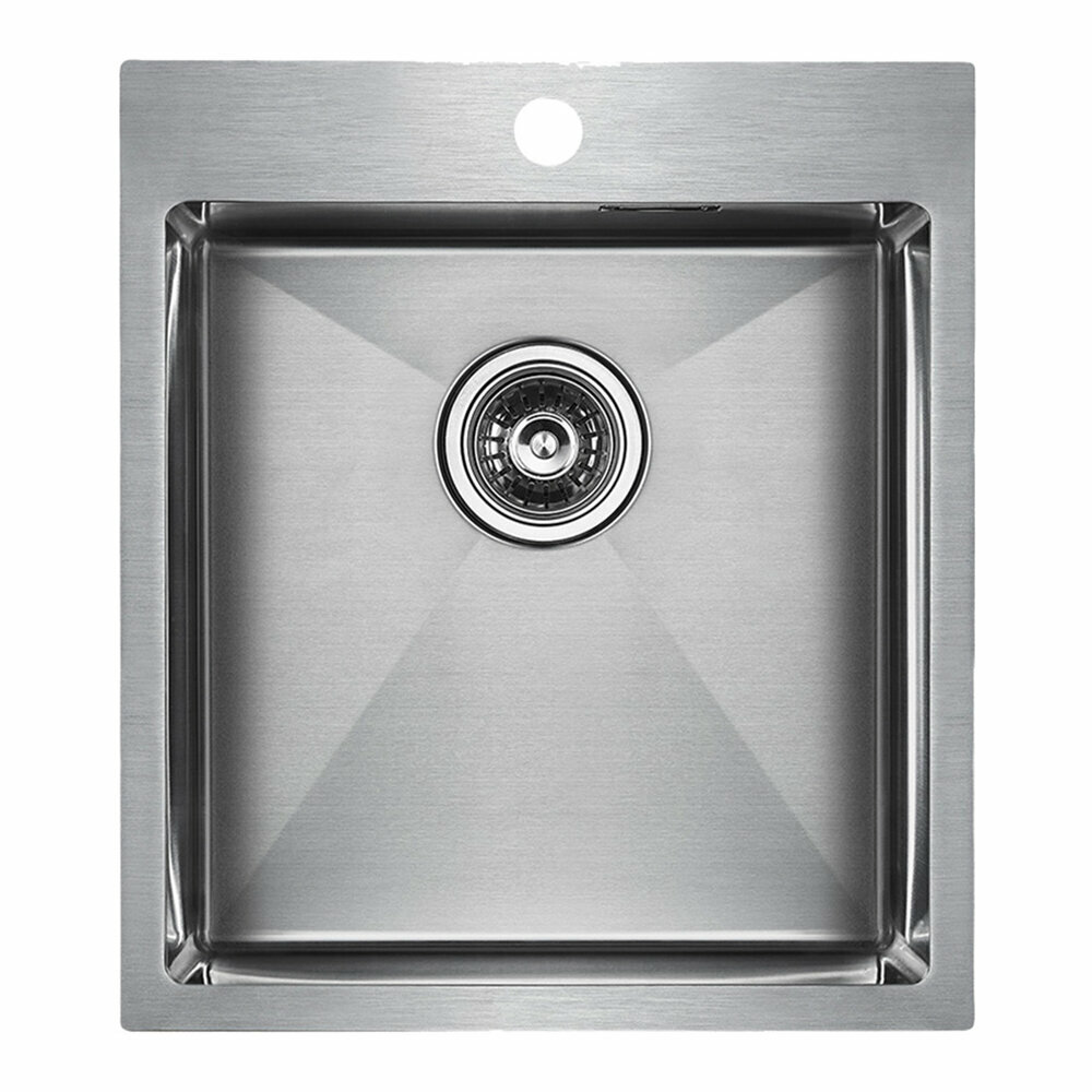 Кухонная мойка из нержавеющей стали AISI304 Paulmark VELTEN 45, 450х510 мм, шумопоглащающее покрытие, отверстие под смеситель, универсальный монтаж, цвет брашированная сталь