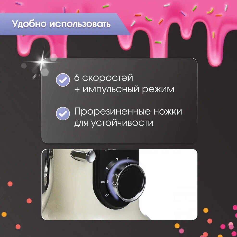 | Насадки | венчик для взбивания / крючки для замешивания теста |