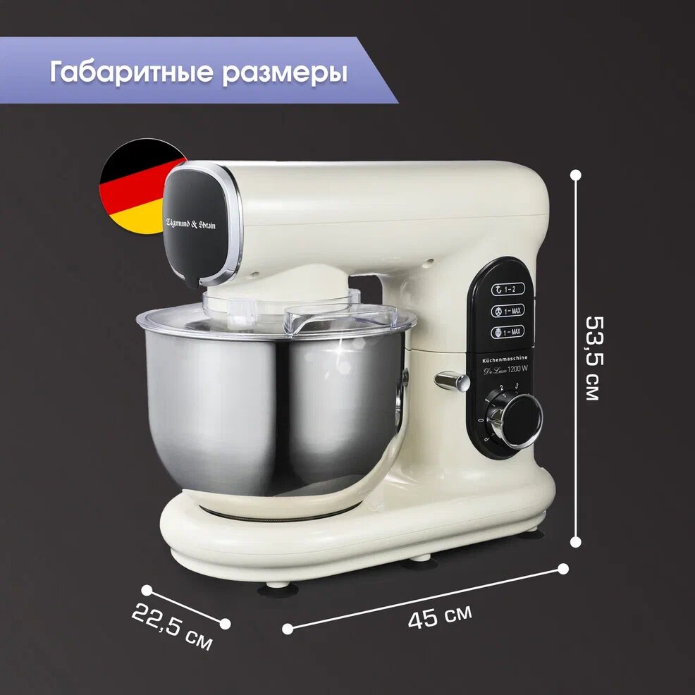 Кухонный комбайн Zigmund&Shtain De Luxe ZKM-999 /планетарный, 1200 Вт, чаша-5 л /