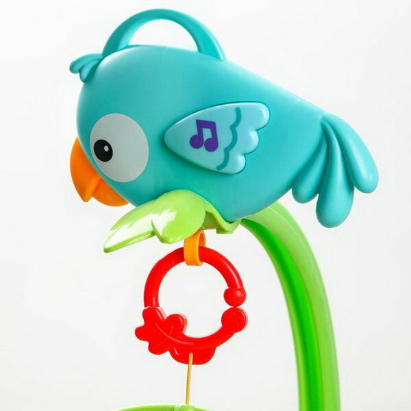 Мобиль музыкальный на кроватку "Тропический лес. Попугайчик", 3 игр, на батарейках, съемный муз. блок