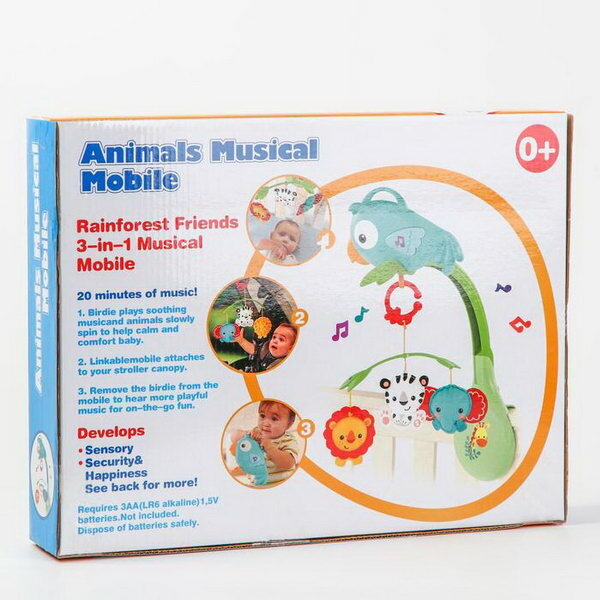Купить Мобиль музыкальный "Тропический лес. Попугайчик", 3 игр., на батарейках, съемный муз.блок