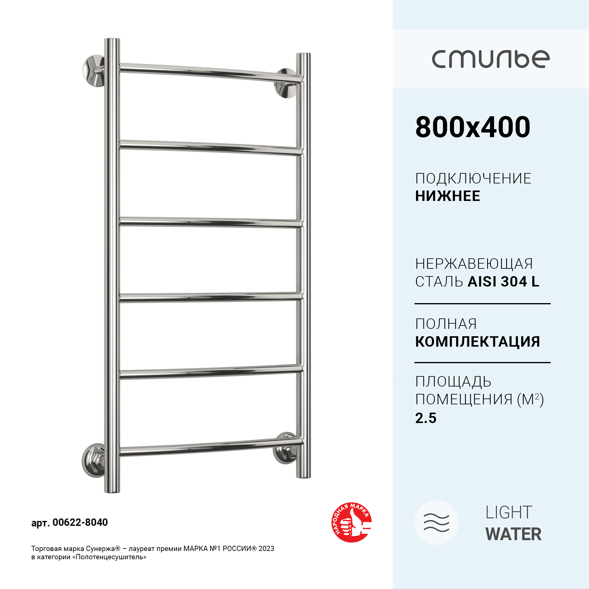 Полотенцесушитель водяной Сунержа, ПС стилье “Версия-Н2“ 800х400 (6) Г 18 (Без покрытия)