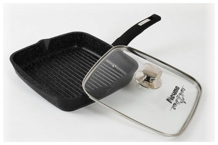 Сковорода-гриль Мечта Гранит black С68802, 28х28 см, крышка