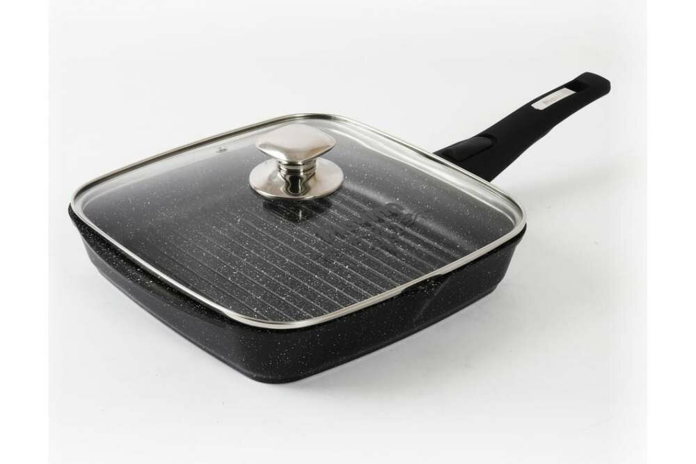 Сковорода-гриль квадр. "Мечта" 28*28см Гранит с антипригарным покрытием с несъемной ручкой и крышкой, можно мыть в посудомоечной машине