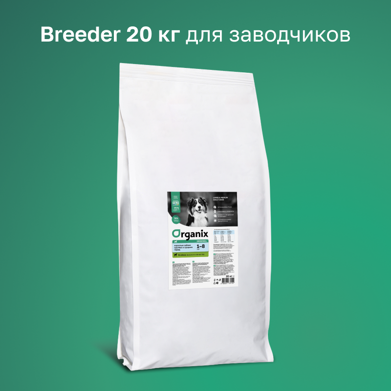 Купить ORGANIX BREEDER LINE ADULT DOG LAMB для взрослых собак всех пород с ягненком (20 кг)