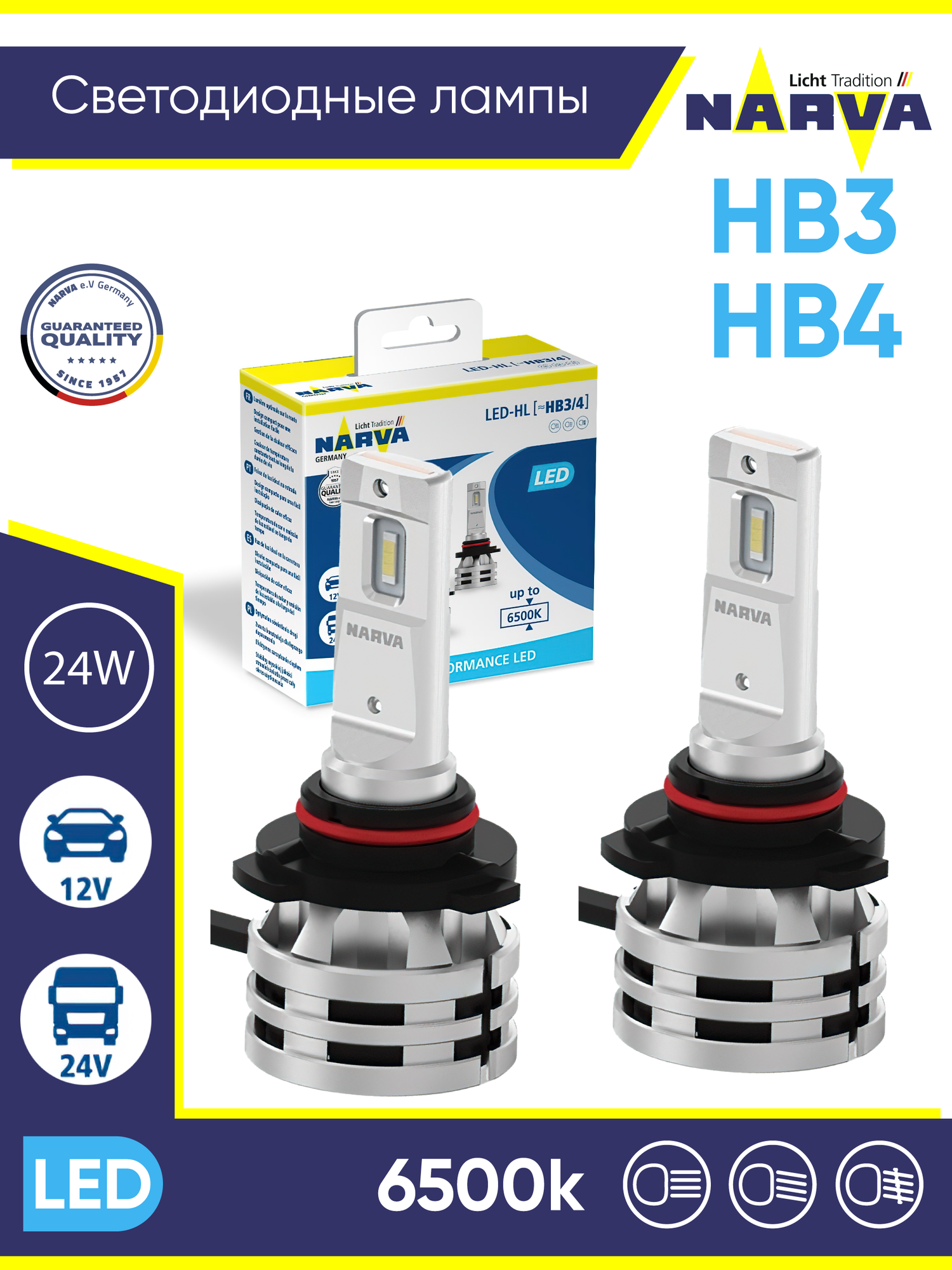 Лампа светодиодная NARVA LED HB3 /HB4 (P20/22d) 6500K 24W Range Performance LED HL (к.уп.2 шт.) 18038 интересное: